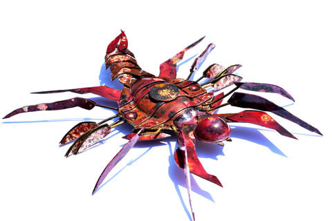 Making these creatures from sheet metal is part of my idealized view of insectoids. Metal is tough and powerful, while such creatures from real life are viewed as weak and vulnerable. I seek to make them better with my designs and so they are whimsical in their final appearance. Metal is a perfect way to propel insectoids above their real-life fragility and immortalize them for the gaze of the audience.